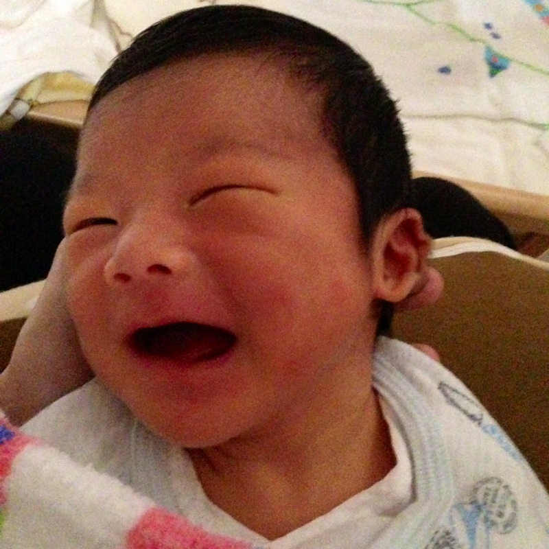 授乳で腹八分目くらいまで飲んだら、笑顔がこぼれます。