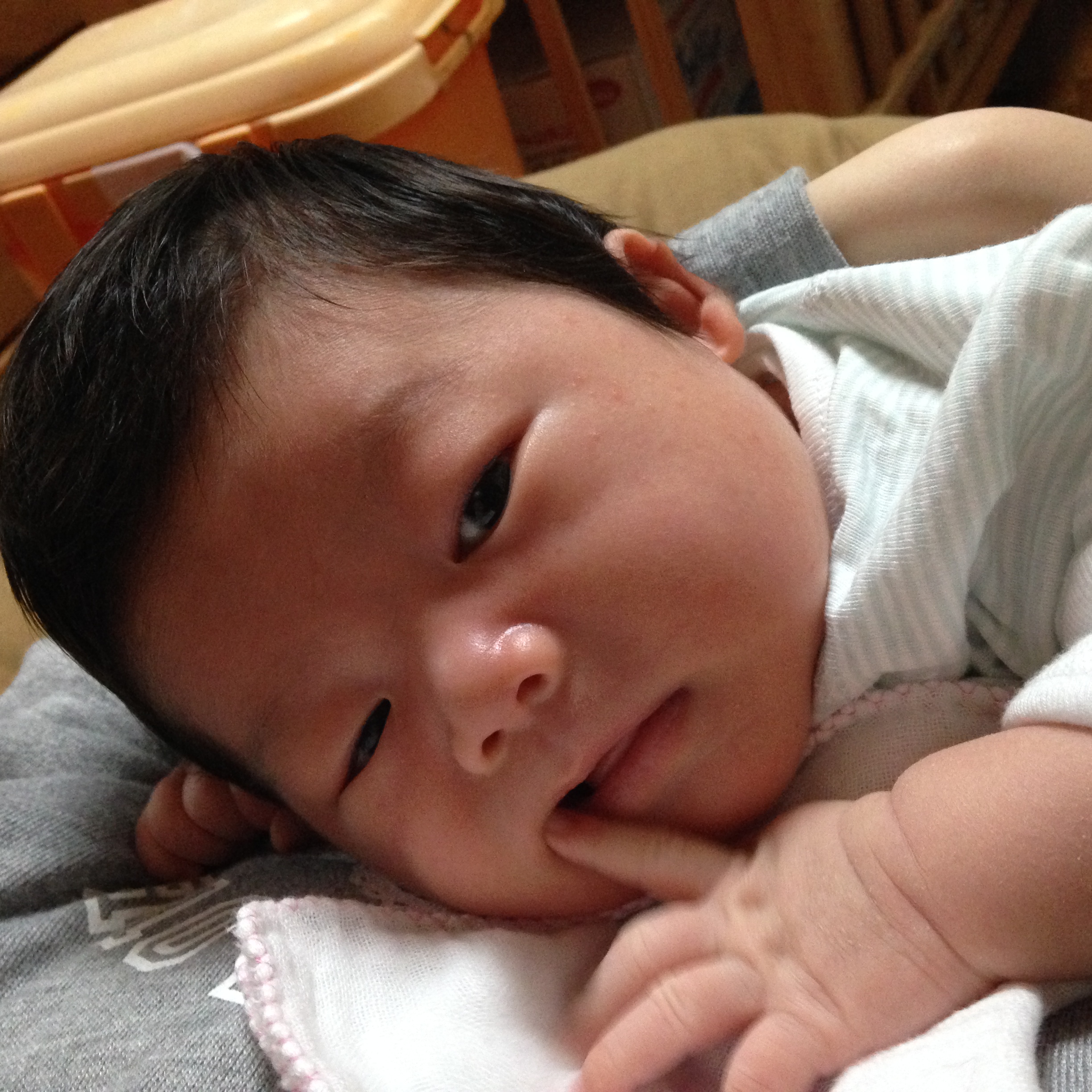 そこで夜の授乳の後、案の定 下ろしたらきばりだした昴を、もう普通に寝かせる体勢にしてみた。