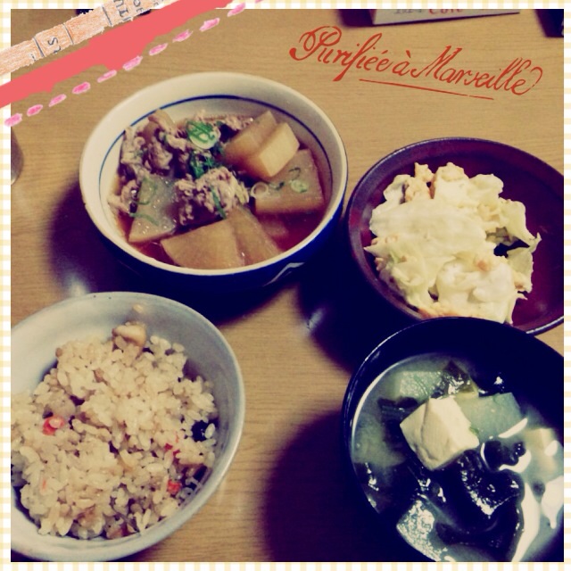 昨日の旦那のランチとまんまかぶってた。大根と豚コマの煮物が。ごめん……
