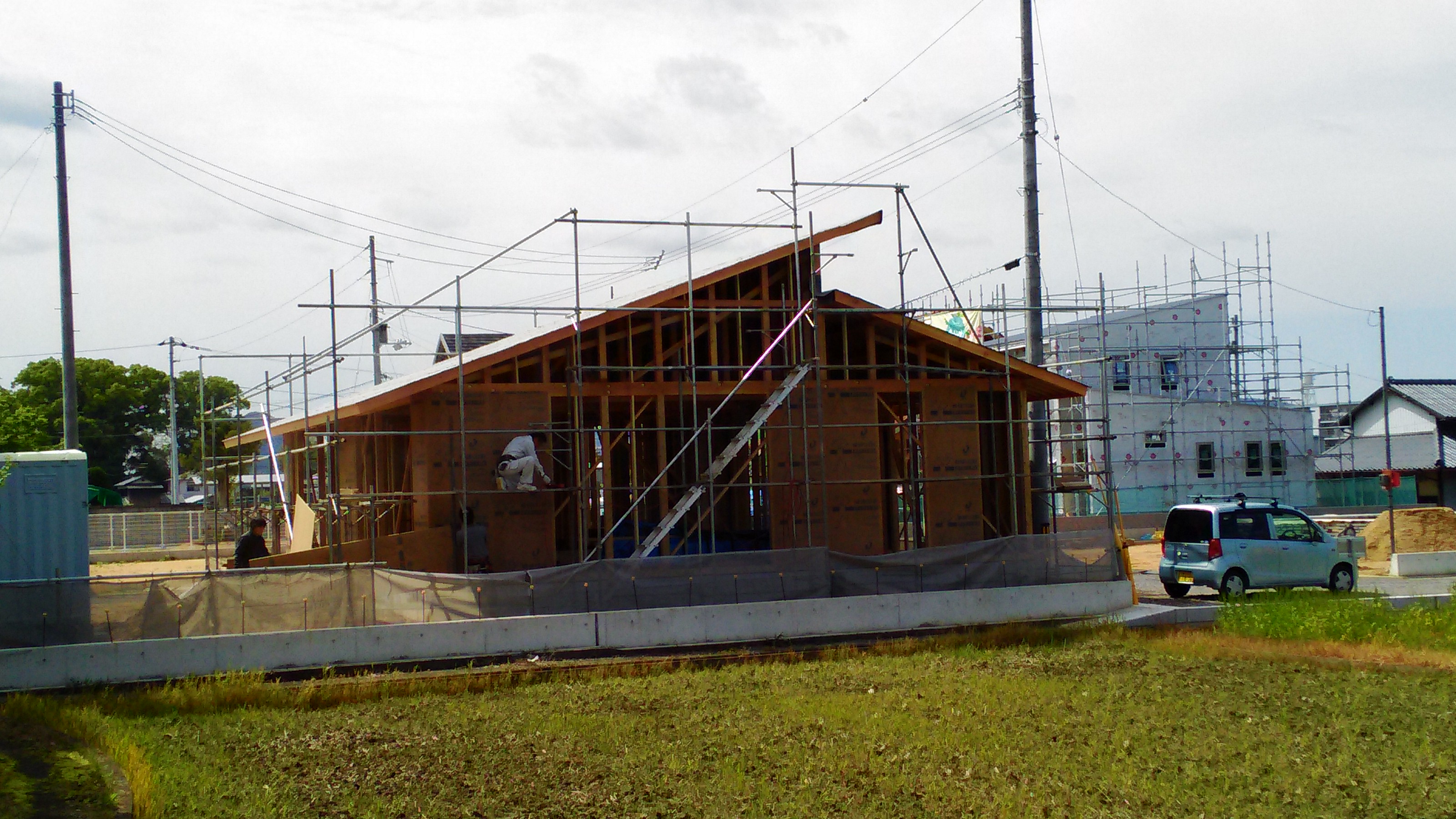 普通にホームメーカーに頼んでたらこんなわけにゃいかんだろうが、うちは大工に直で注文してるので、毎日、マジで毎日、旦那が昼と夜と現場見に行ってるし、鍵も貰ってていつでも自由に入ってます。普通はこんなに顔出し、口出ししないしされても迷惑なんだけど、設計士とか挟んでないんで、その場その場で随時決定、変更する事も多い大工と、密に話してます。うひー
