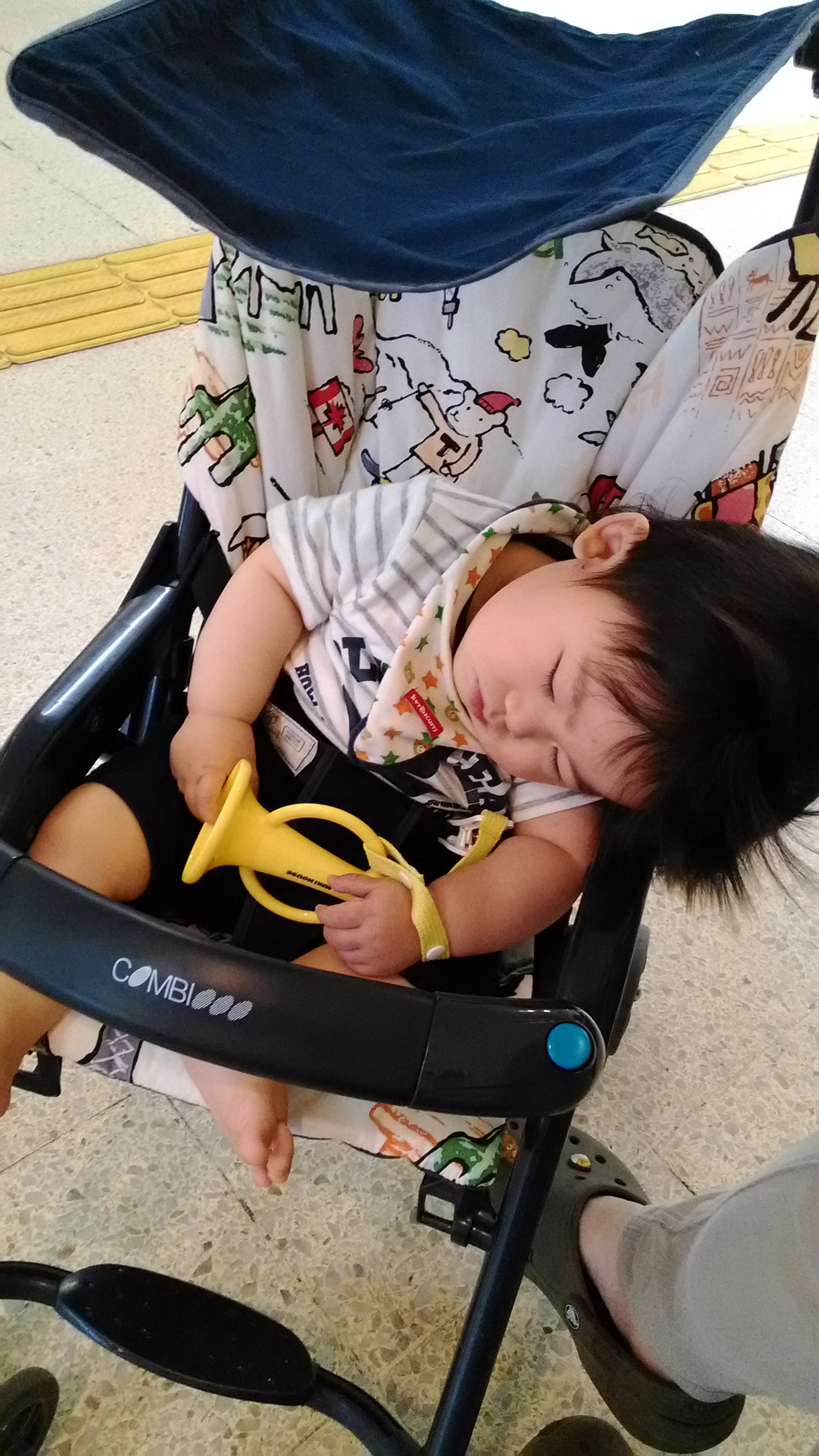 7ヶ月8.7kgの昴を抱っこ紐して、普段から大荷物なママバックと、旅行手荷物(先に郵送もしているのに)で両手パンパン。ママバックは肩掛けですがね