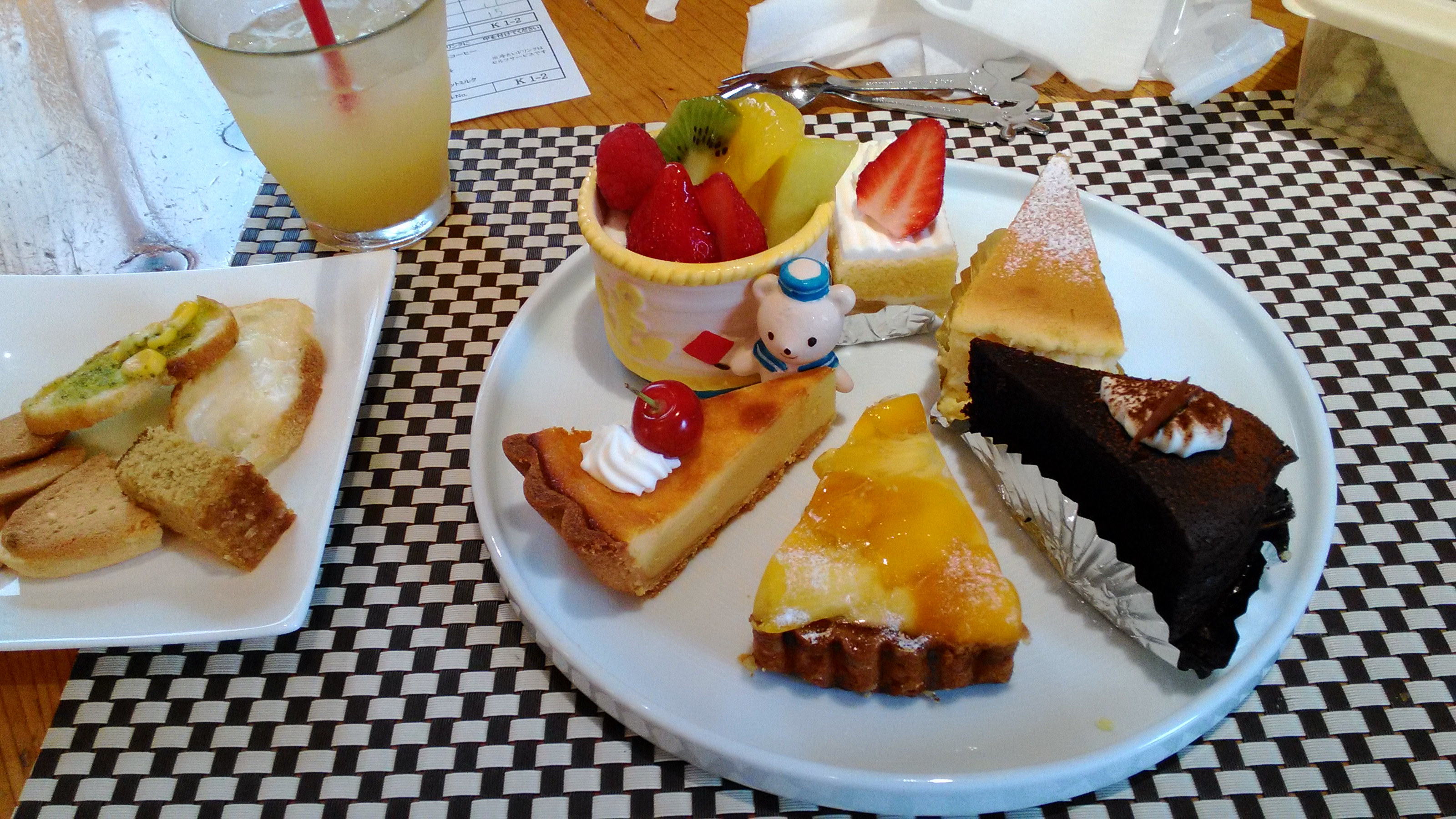 それも考えなしにやったから、重たいチョコケーキやタルト、チーズケーキも一発目から盛られている。