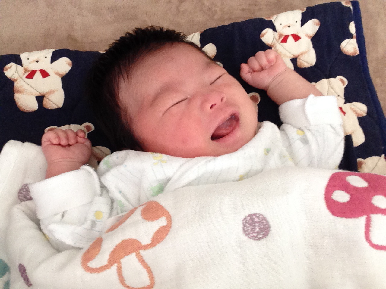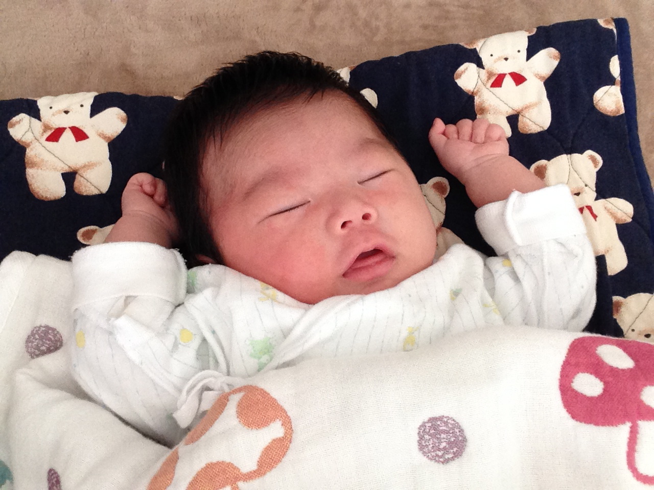 いつも9時前後から寝るのが一番長い睡眠になりますが、5時間越えは過去最高!(機嫌良く泣きもせずにぱっちり起きてしゃべりかけてきた。「おーおー」とか)