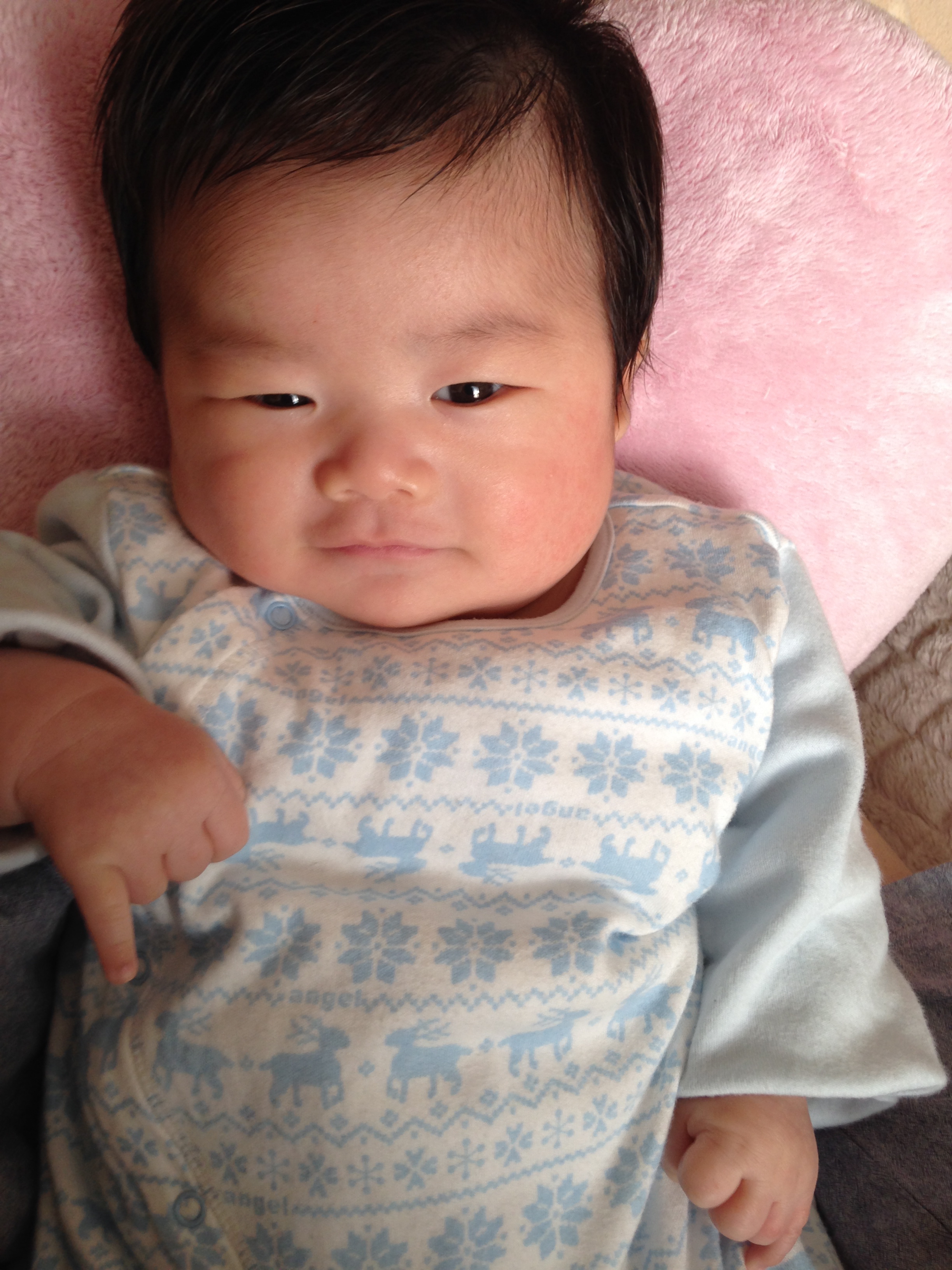 ・でもぐずりだしても、自分だけでおさまるようにもなってきました。(「ふぅーっ」と息を抜いたり、指をしゃぶってみたりして)