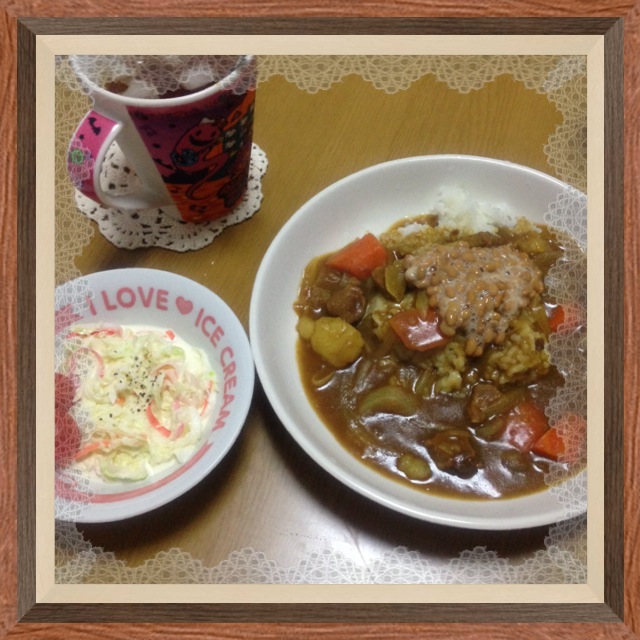 今晩はカレーです。私は納豆チーズカレー♪ 納豆カレー美味しいのでオススメです。