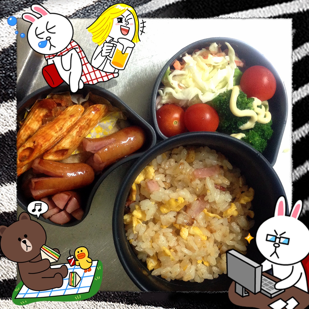 タコウィンナー、マカロニのケチャップ炒め(以前作った冷食)、