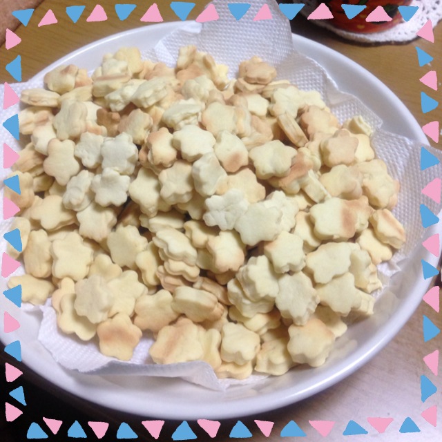 いっぱい食べたい!3倍作ろう!! と調子にのって大量の材料を投入したところ、持ってるクッキー型が小さいのしかないがために、ものすごい時間かかって型抜きしました。(それも普通の平日の夜に!)