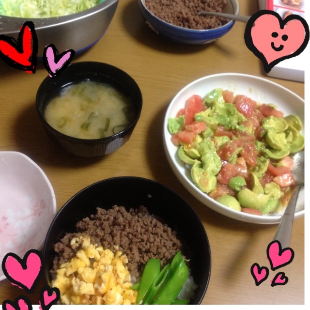 三食そぼろ丼。