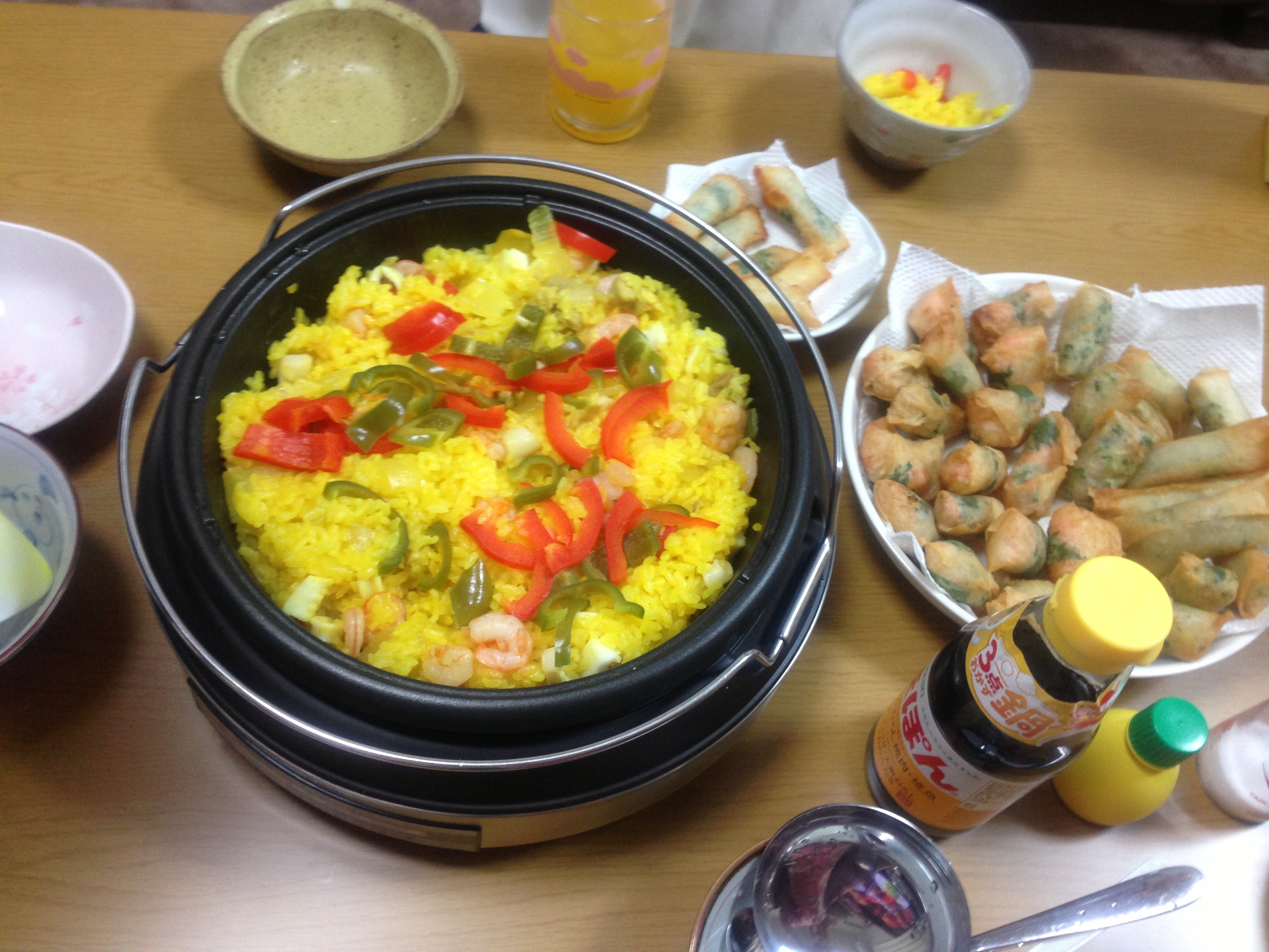 途中で画像のパエリアと春巻(ちっちゃい)を作って食べました。