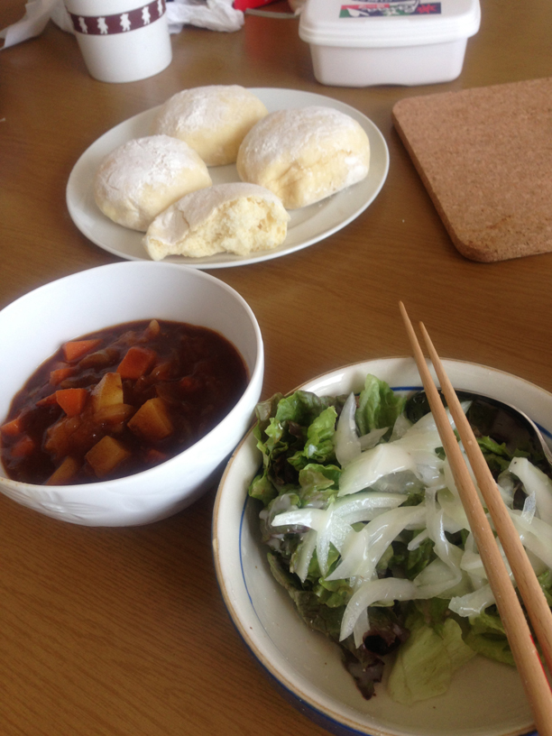 シチューとサラダでランチにした。