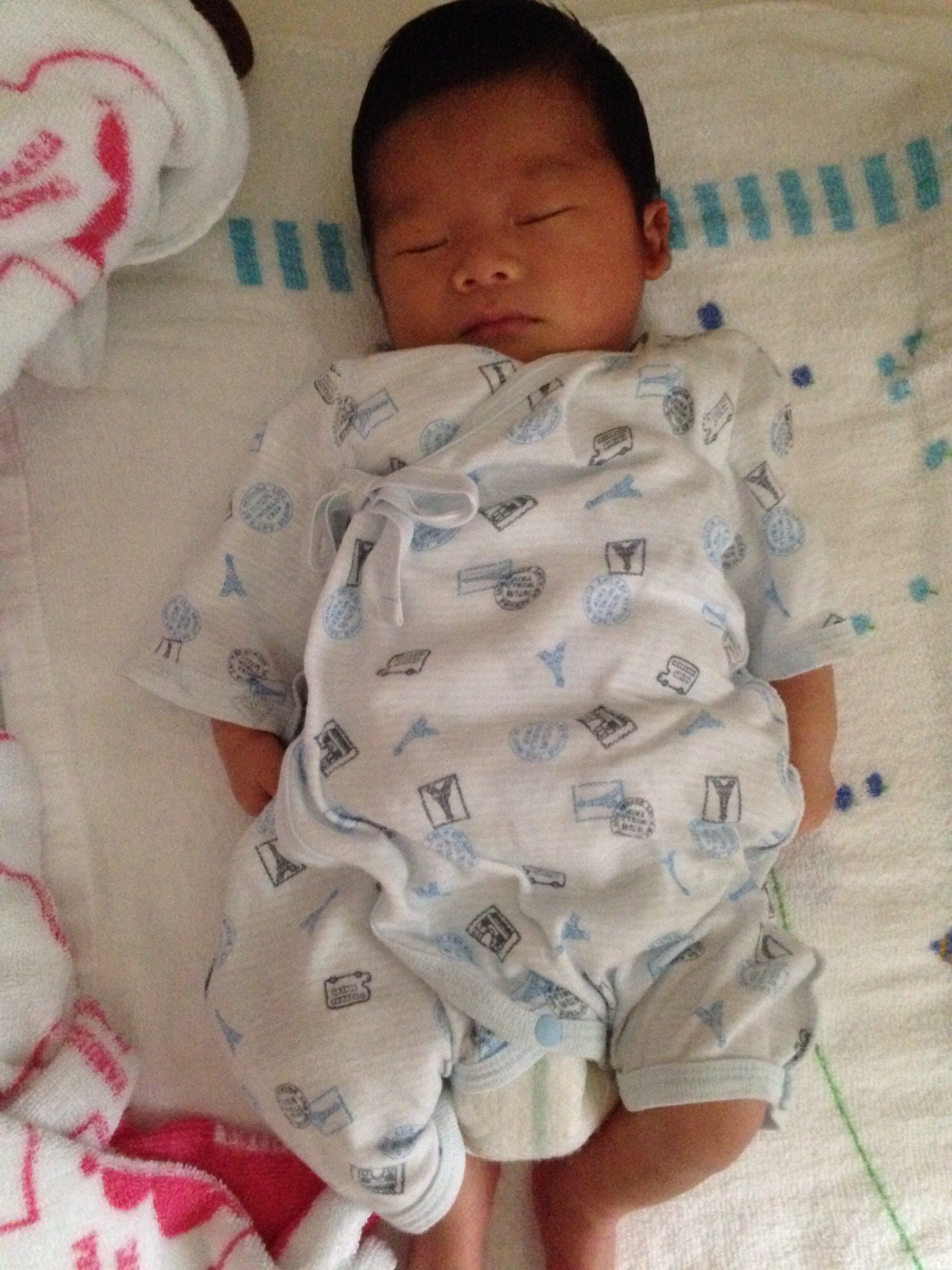 昨日は乳もうまくいかない上に、オシッコがベビーベッドのシーツを汚したので、それも取り替えることになった。
